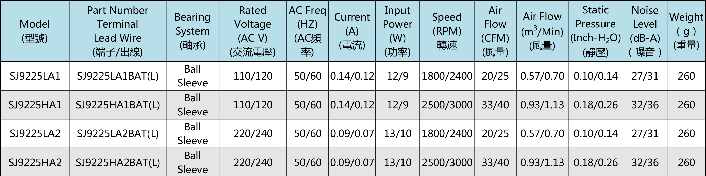臺灣三巨SJ9225HA2-AC軸流散熱風扇